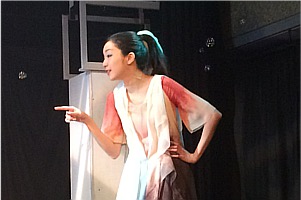 かもめ アテンション、プリーズ。地上より垂直に62.1マイル、海抜100キロメートル上空に引かれましたる、カーマンライン。大気圏と宇宙圏との境目より今、開演のアナウンスを務めますワタクシ、通信衛星の「かもめ」でございます。え、一口に100キロメートルと申しましても、それが垂直か?平行か?X軸かY軸かのプランニングによりまして、ご予算のほうも大きく変わって参りまして、垂直ですと、値切りに値切って100億円、けれど仮にそれが平行であったなら、100キロメートルはホンの目と鼻の先、東京から熱海、1980円の道のりでございます。どうぞご予算と重力との折り合いをソイヤとつけまして、きっとまた再び、お芝居の中でお会い致しましょう。…私はかもめ。また、会うかもね。
